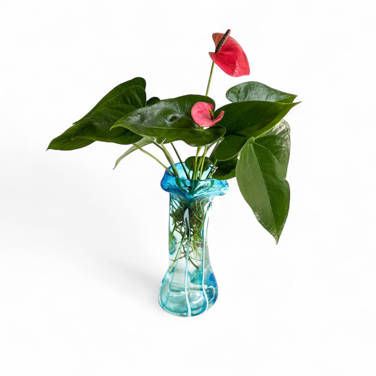 Vintage MCM Hand Blown Bright Blue & White Melted Swirl Design Glass Art Vase