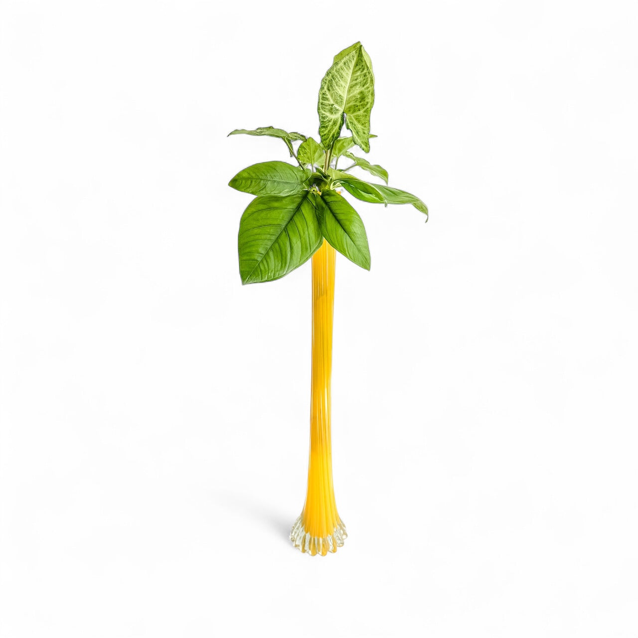 Vintage Hand Blown Soliflore Long Molded Neck Bright Yellow Opaque Pedestal Base Glass Art Vase