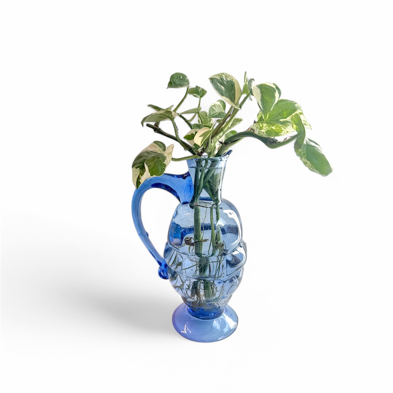 Hand Blown One Of A Kind Blue Glass Art Pitcher