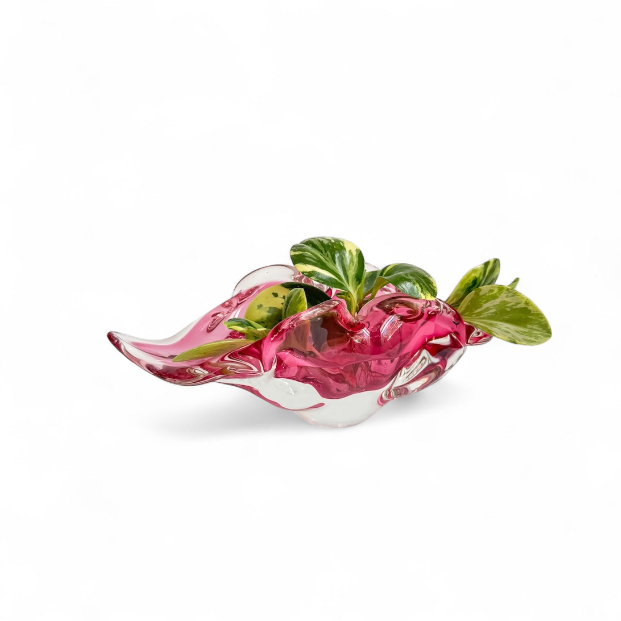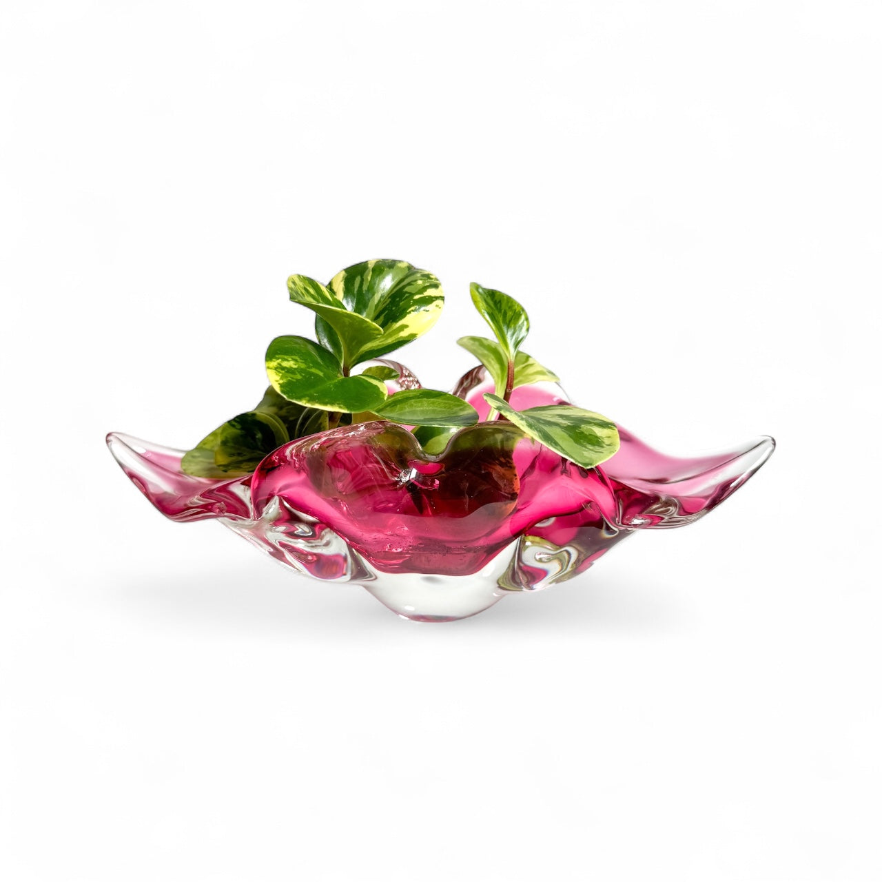 Vintage Hand Blown Bohemian Czech Bright Pink Large Glass Art Vase