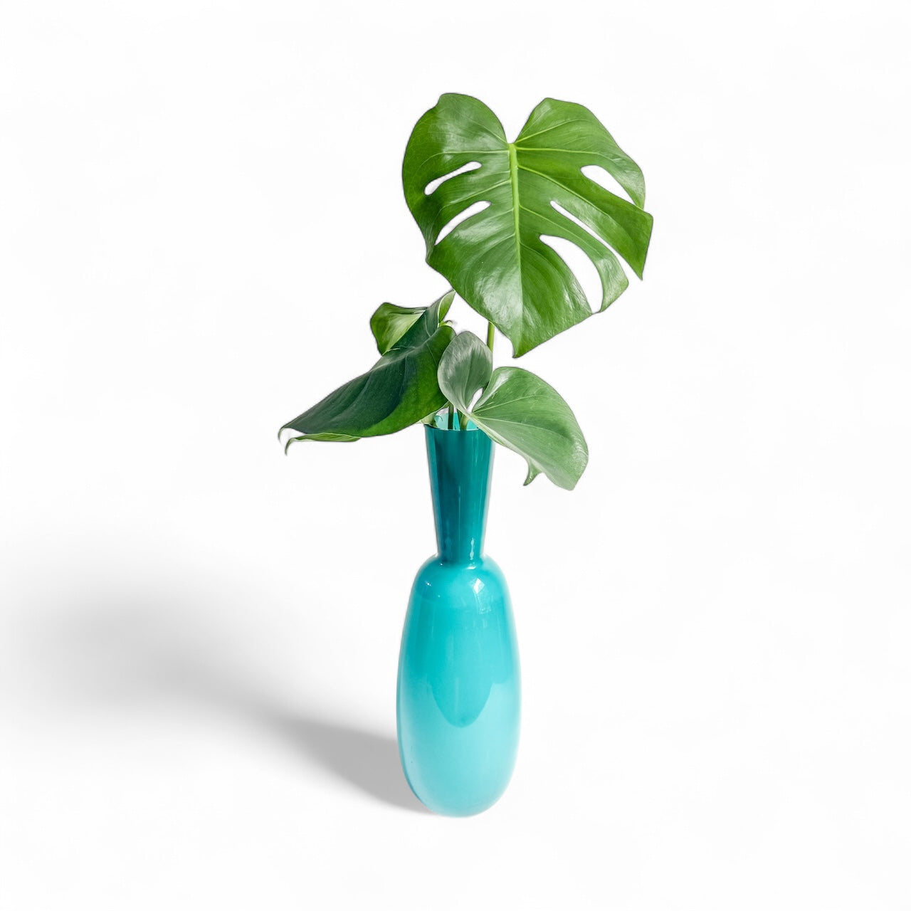 MCM Hand BlownTall Bright Turquoise With White Casing Inside Glass Art Vase