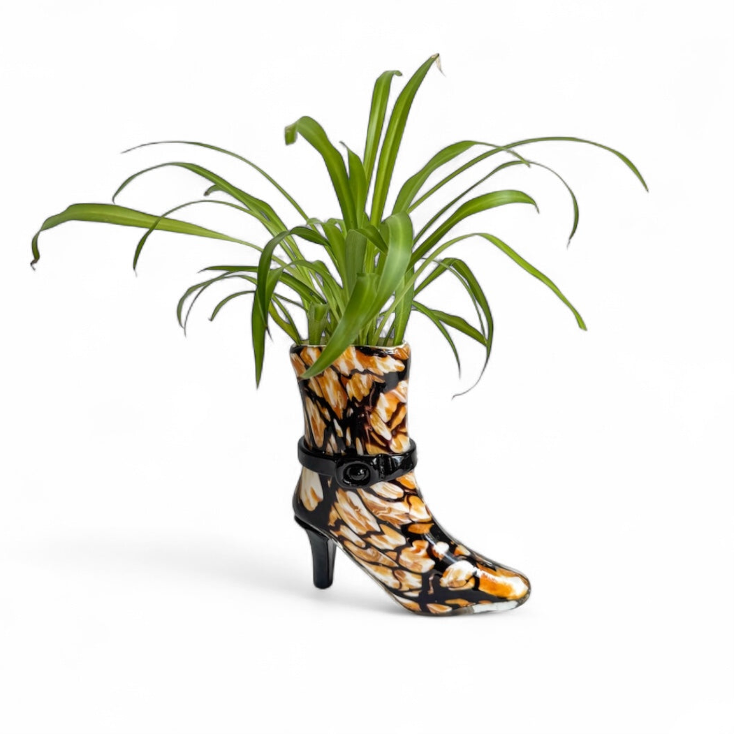 Vintage Hand Blown Murano Style Tortoise Shell Design Glass Art High Heel Boot