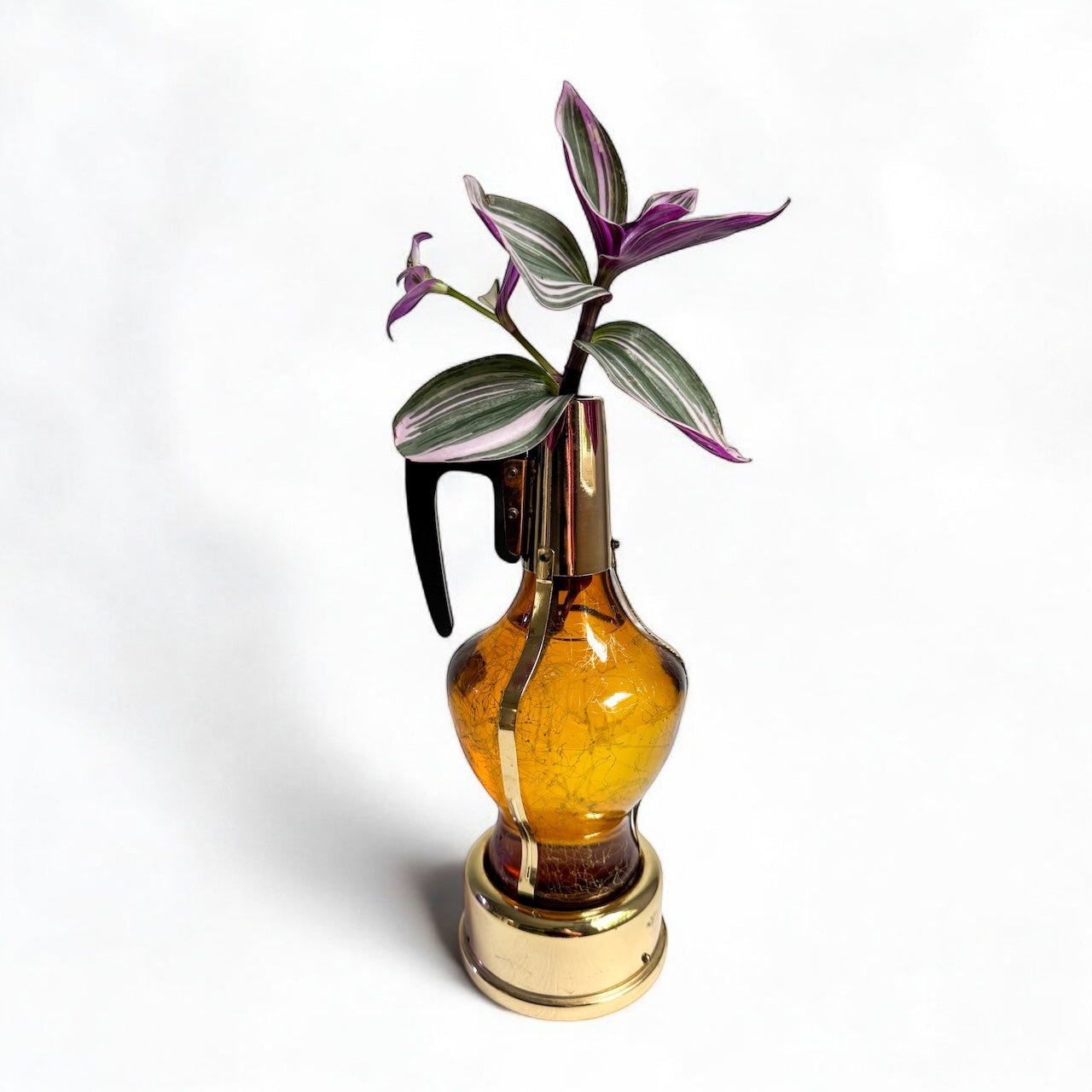 Retro 1960/70's Glass Body Gold Accents & Amber Crackle Glass Music Box In Base Musical Decanter