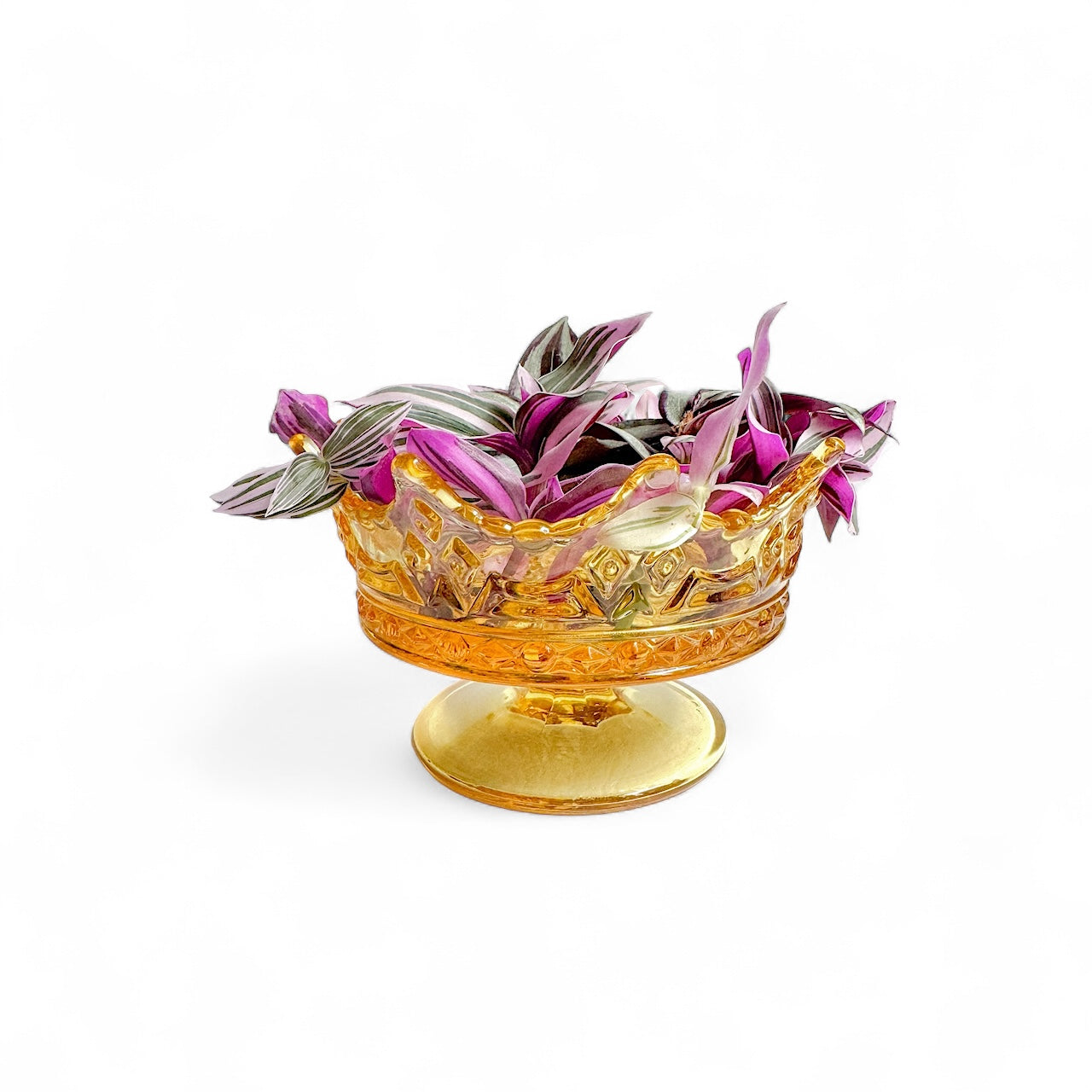Vintage Fostoria Lukembourg Gold Glass Art Crown Trio Candle Holder
