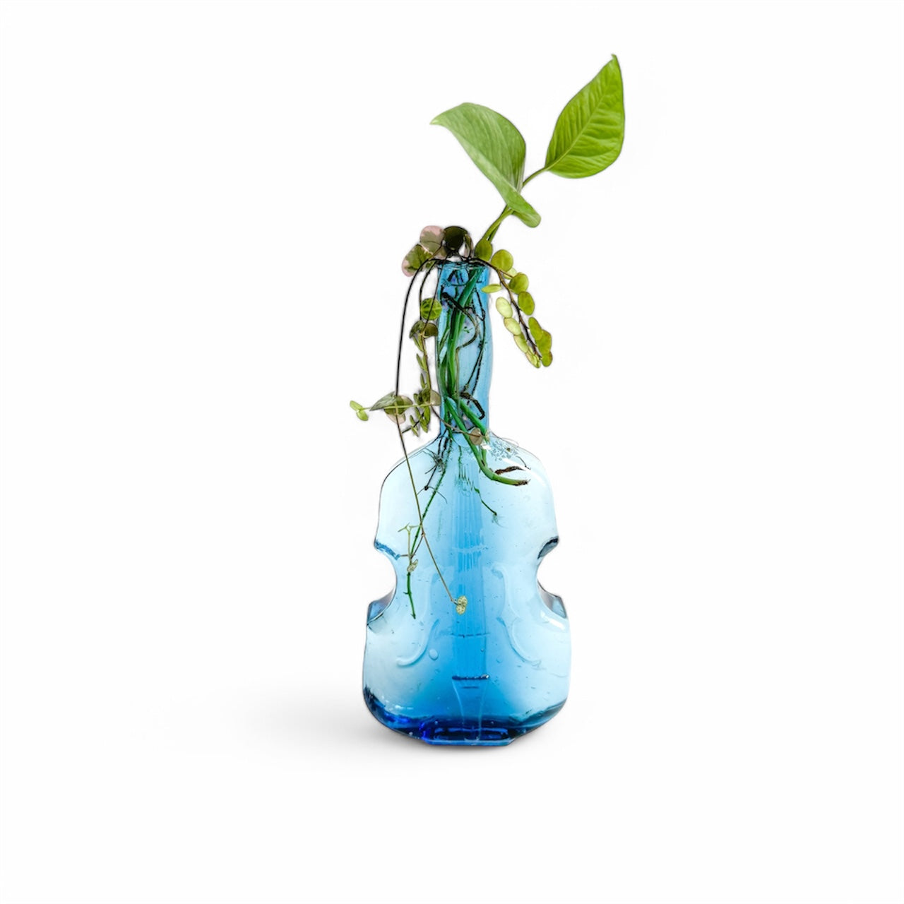 Antique Bright Blue Hand Blown Glass Violin Vase