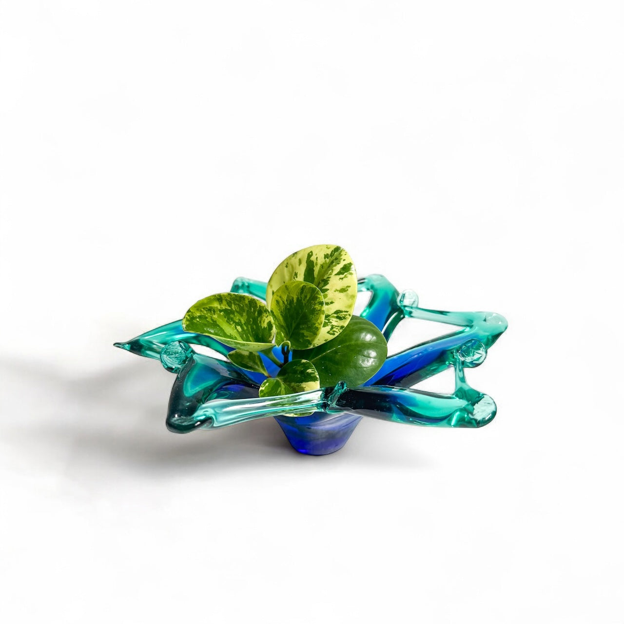Vintage Murano Style Blue & Teal Abstract Starfish Design Glass Art Dish