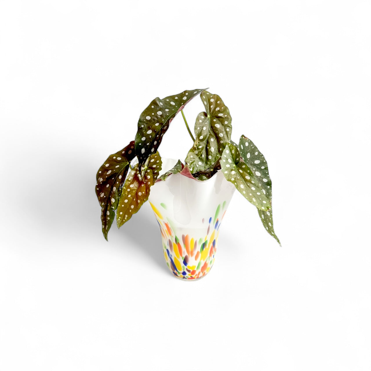 Vintage Hand Blown Poland Multi Colored Scattered Frit Design Wave Rim Glass Art Vase