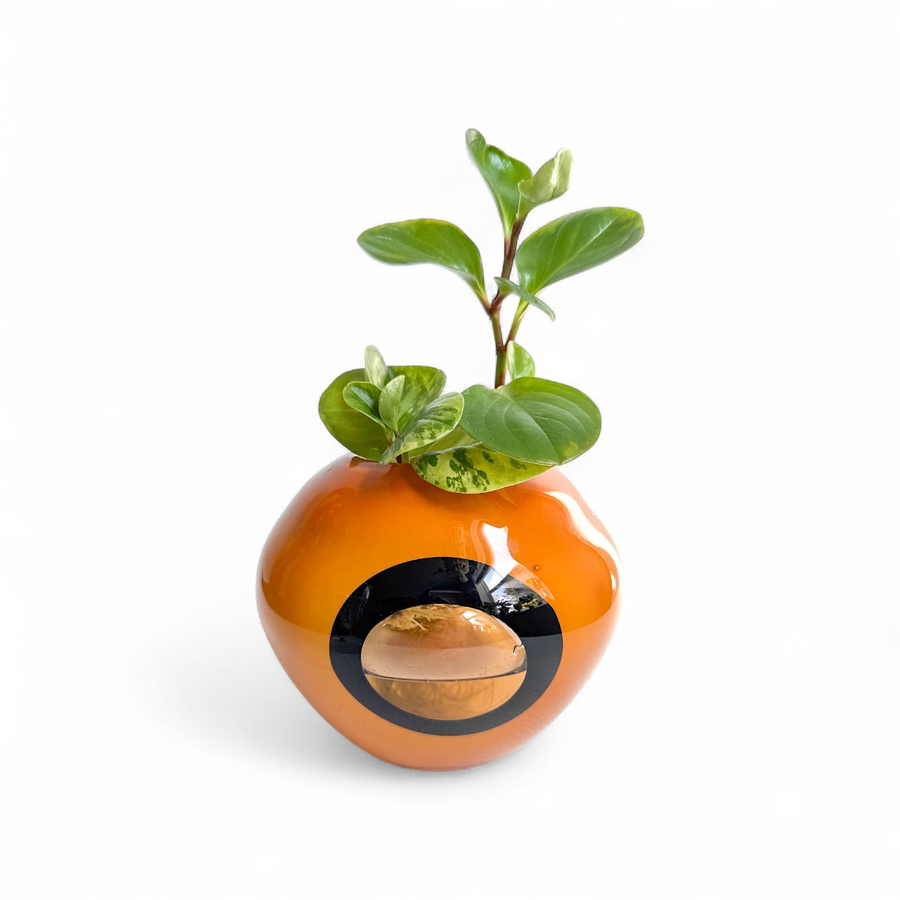 Vintage Hand Blown MCM Style Amber & Black Window Style White Cased Glass Art Bowl